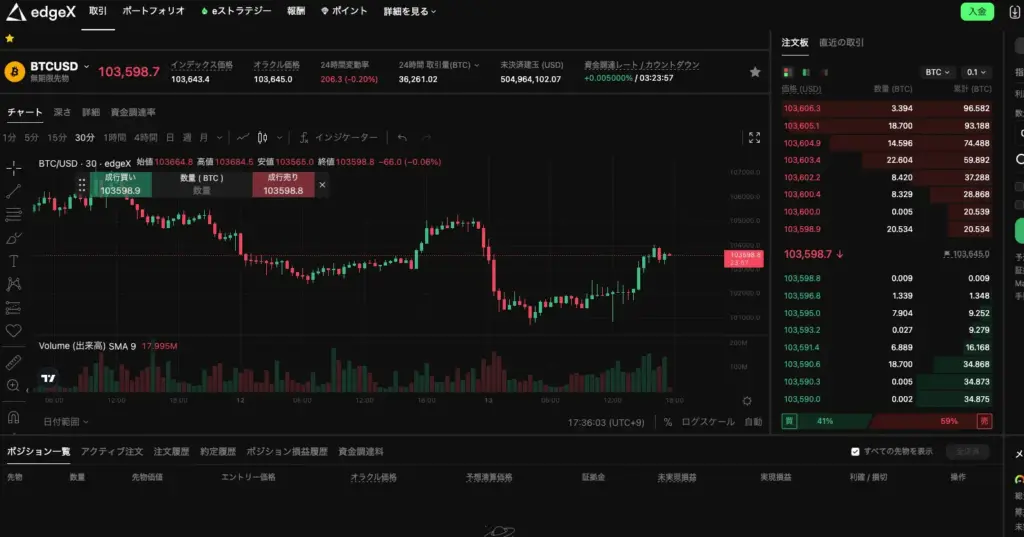 edgeXは、通常の現物取引ではなく、価格の上がり下がりの両方で利益を狙える「パーペチュアル取引」を扱っています。