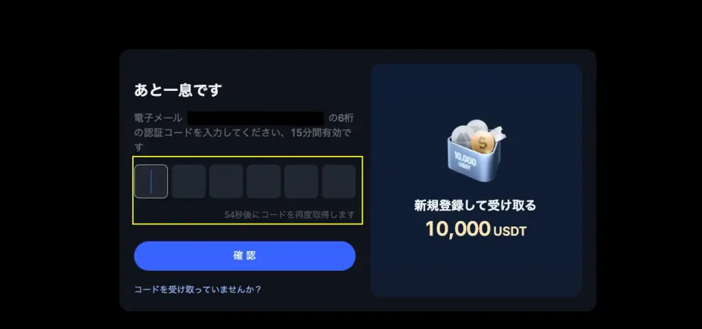 4. 通知された認証コードを入力し、確認ボタンをクリックします。