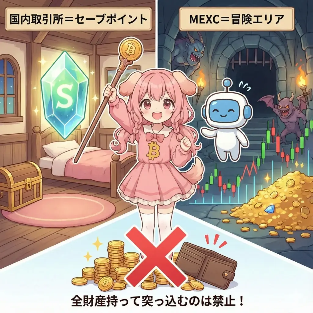 「国内取引所で日本円を管理しつつ、取引の幅を広げるためにMEXCを併用する」