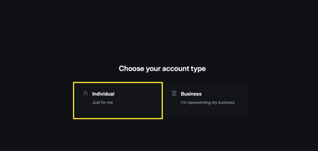 2. 個人の方はIndividualを選択します。