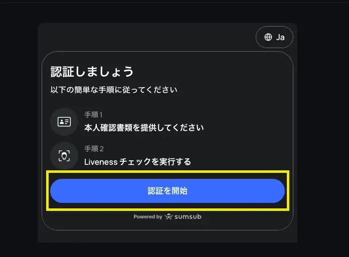 8. 本人確認が完了すると認証画面が表示されます