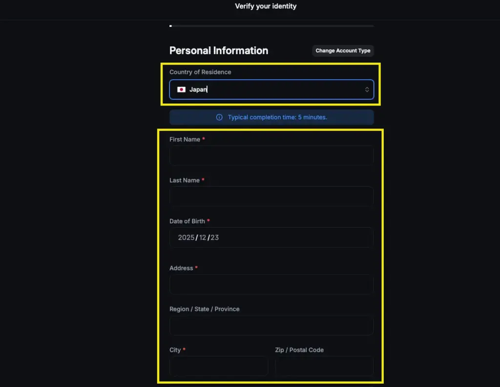 次に、本人確認(KYC)の一環として追加質問(Additional Questions)が表示されます。