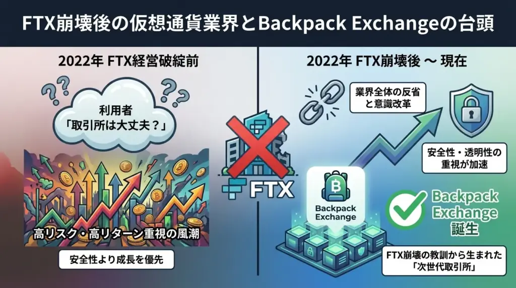 Backpack Exchangeが注目されている理由の一つは、FTX崩壊後の仮想通貨業界という特別なタイミングで誕生した点にあります。