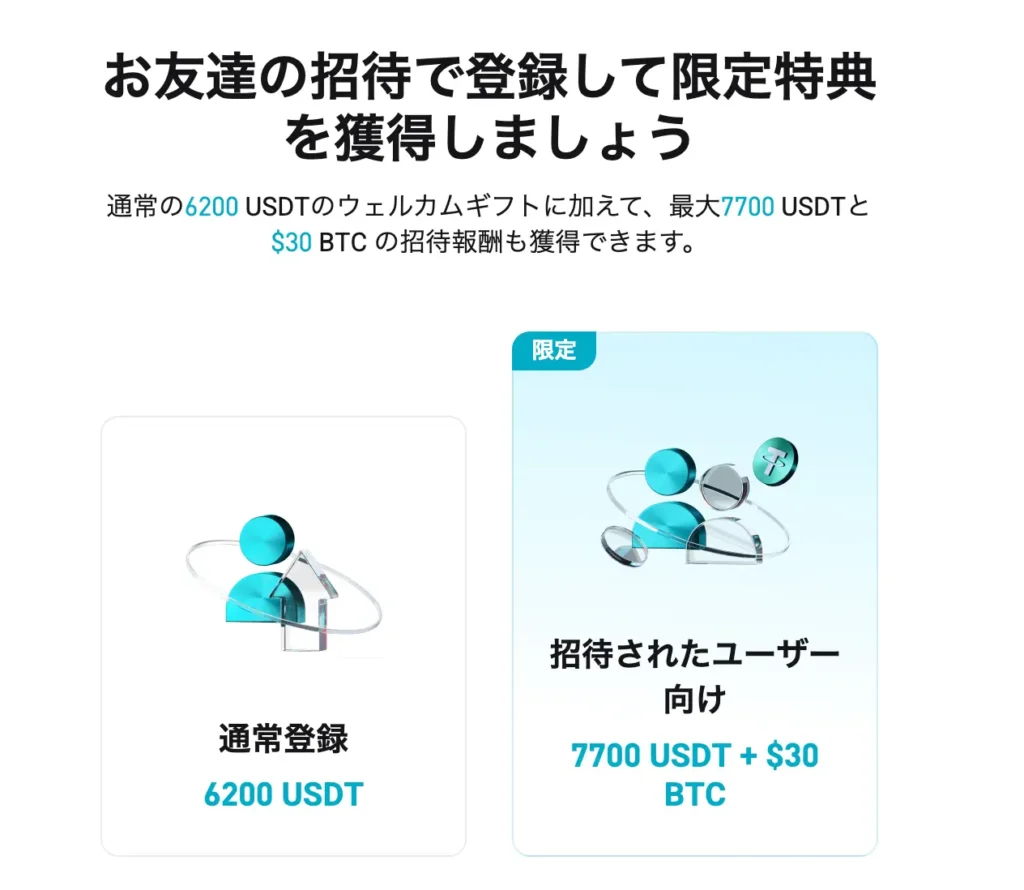 👉 最大7,700USDT相当+30ドル分のBTCが受け取れる招待特典はこちらから