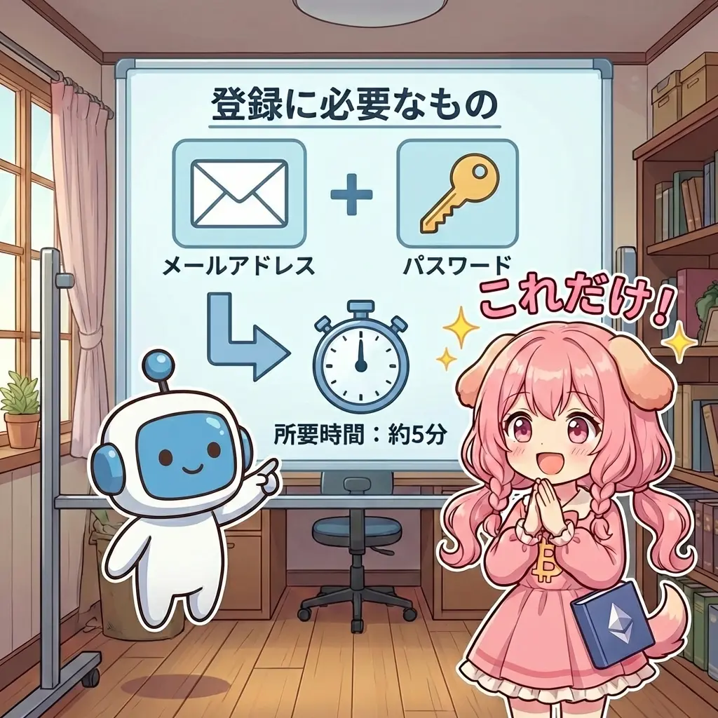 口座登録は無料で、メールアドレスがあれば数分で完了します。