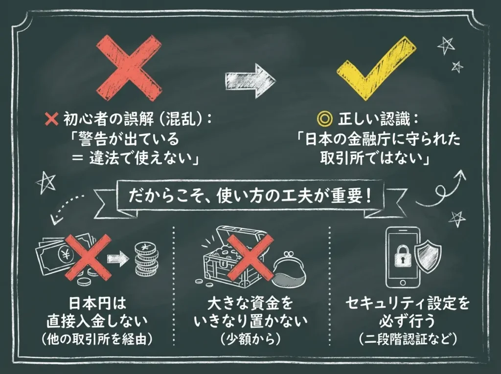 つまり日本のルール上、国内取引所と同じ感覚で使うのは危険です。