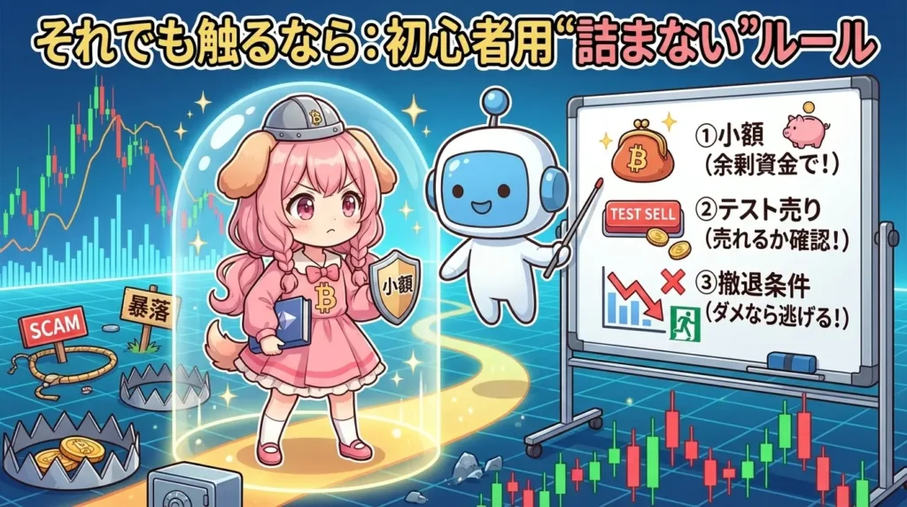 触るならルールを先に決めよう。「小額」「テスト売り」「撤退条件」の3点セットだよね。