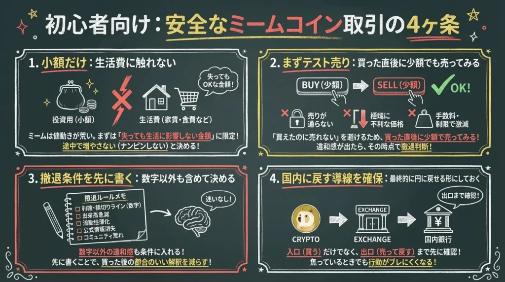 “勝ち方”よりも、“詰まない導線”を先に作ることが、ミーム相場では生存率を上げます。