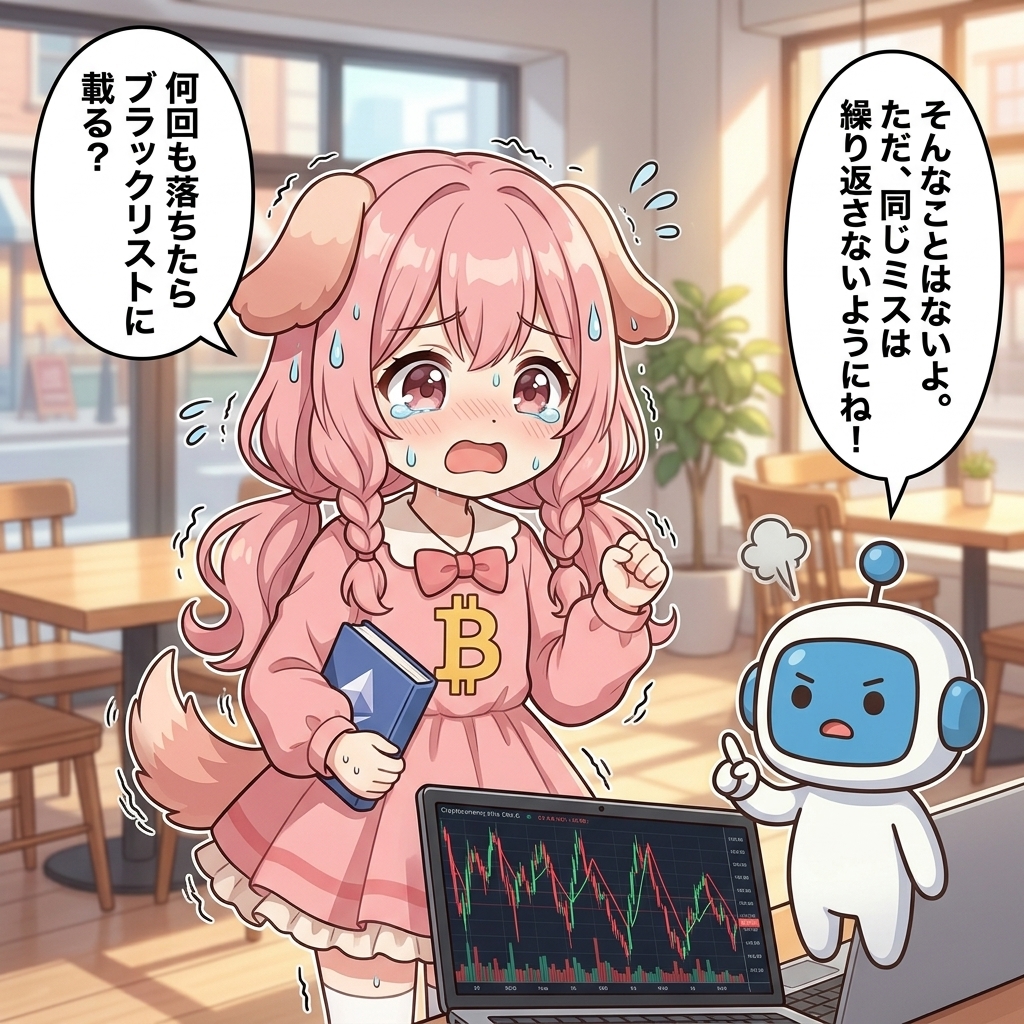審査に落ちた記録自体はbitbankの社内に残りますが、信用情報機関のような外部機関に記録されることはありません。再申請時に不利になることもないため、原因を解決すれば問題なく再挑戦できます。落ち着いて必要な対策を行いましょう。