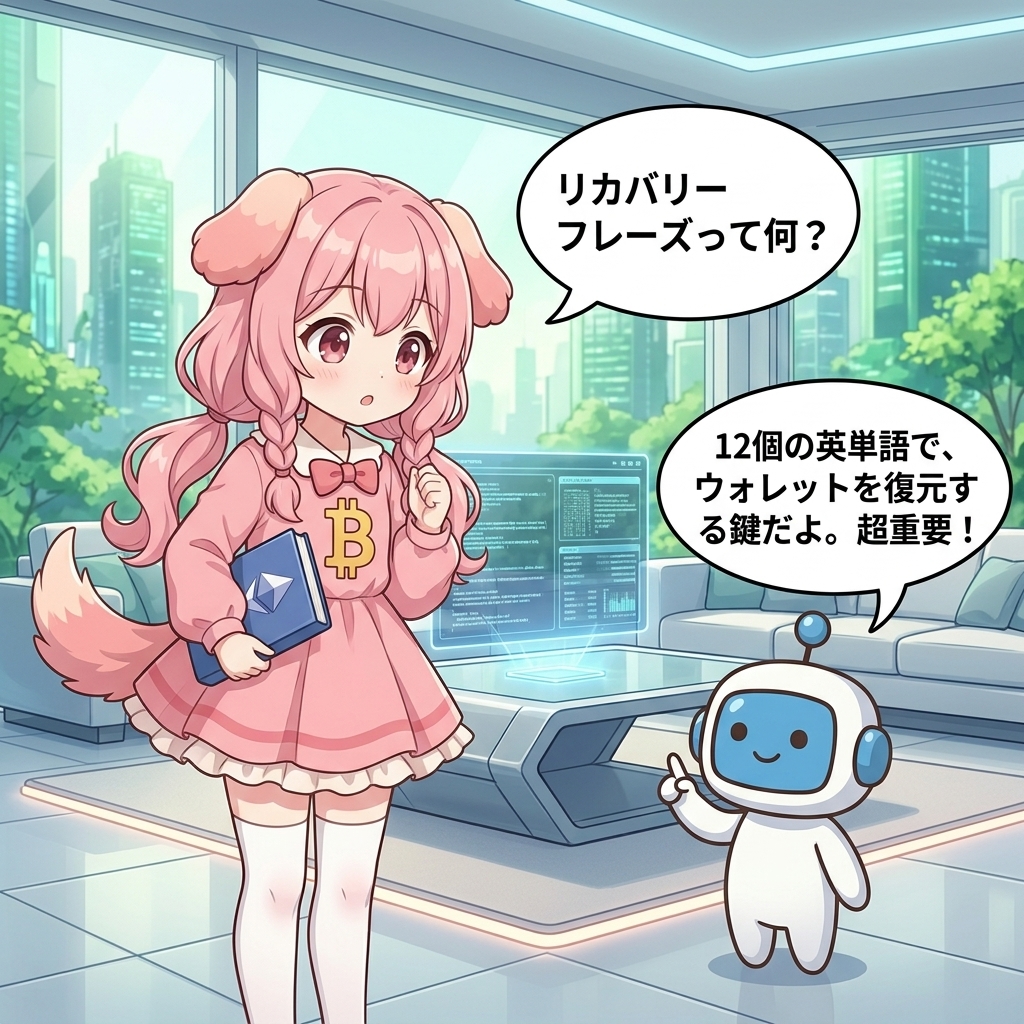 12個の英単語で、ウォレットを復元する鍵だよ。超重要!
