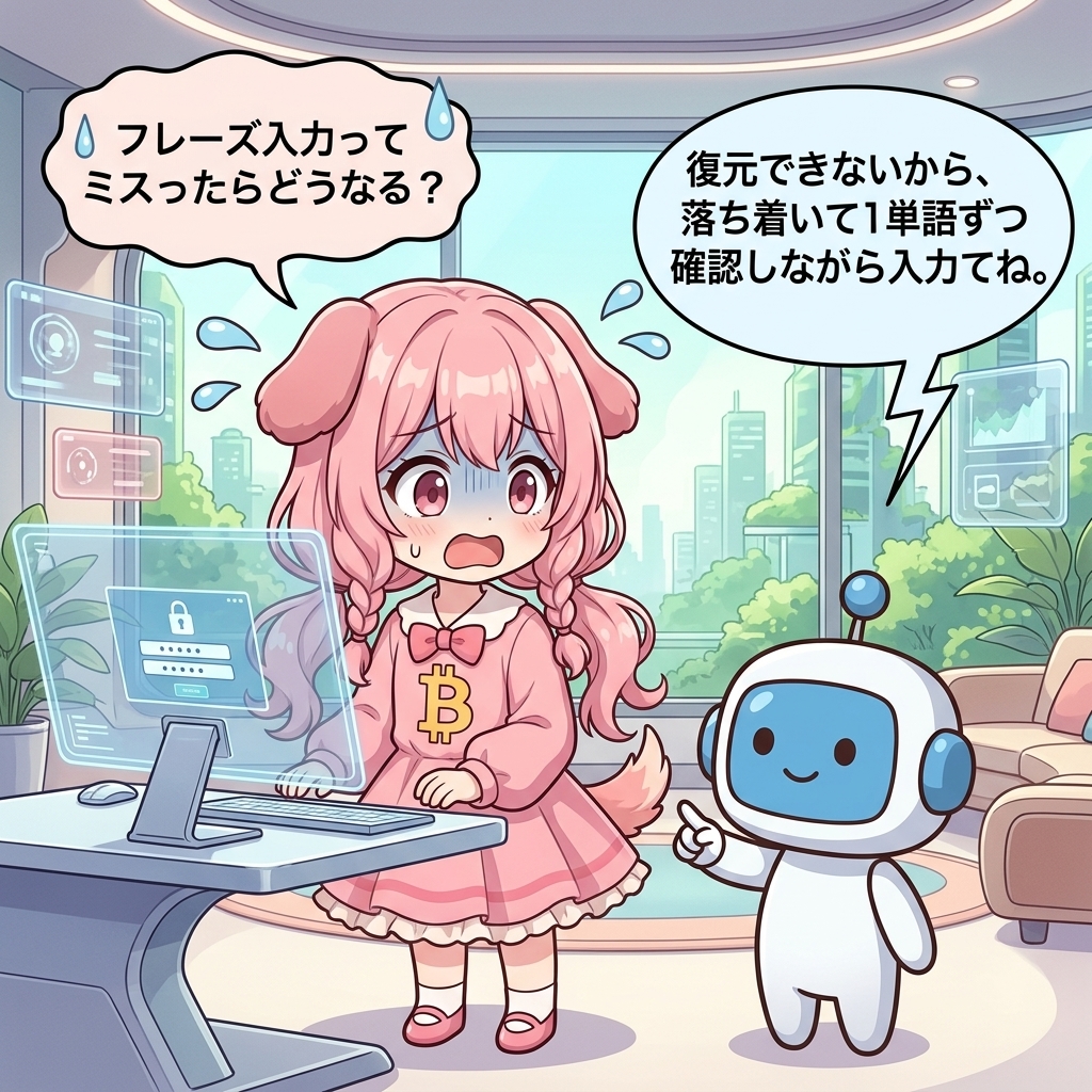 復元できないから、落ち着いて1単語ずつ確認しながら入力してね。