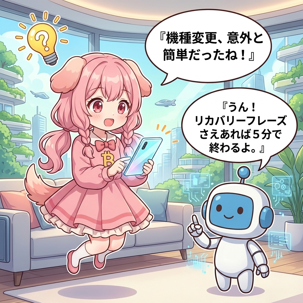 公式サポートを装った詐欺も多いため、DM等でフレーズを聞かれても絶対に答えないでください。安全に機種変更を済ませて、新しい端末で快適な仮想通貨ライフを楽しみましょう!